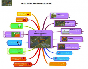 We zijn niet geneigd foto’s te kopen waar we zelf niet op staan. Als we dus op het beamerscherm bijvoorbeeld een mindmap (een ‘foto’ van ons gesprek) ‘live’ zien groeien met onze eigen opmerkingen, vragen en ideeën in steekwoorden, voelen we onze gehoord. Bovendien kunnen we makkelijker ‘op elkaars schouders gaan staan’, het geheel blijven overzien terwijl we toch de details in kunnen ‘zoomen’. Dan ontstaat er draagvlak en een goede basis om na de bijeenkomst beter te communiceren, sneller beslissingen te nemen, makkelijker kennis uit te wisselen en dus de acties en projecten die daaruit voortkomen te versnellen. Live mindmappen is hiervoor een uitstekend middel.
