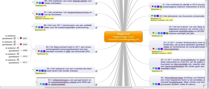 In deze reeks gaan we een aantal projecten belichten om te kijken wat we hiervan kunnen leren. In dit artikel; het ‘Big Board’ van kabinet Balkenende. Een actueel onderwerp omdat het doel van dit project was om burgers te informeren over het wel dan niet slagen van het beleid dat was gebaseerd op de verkiezingsbeloften.